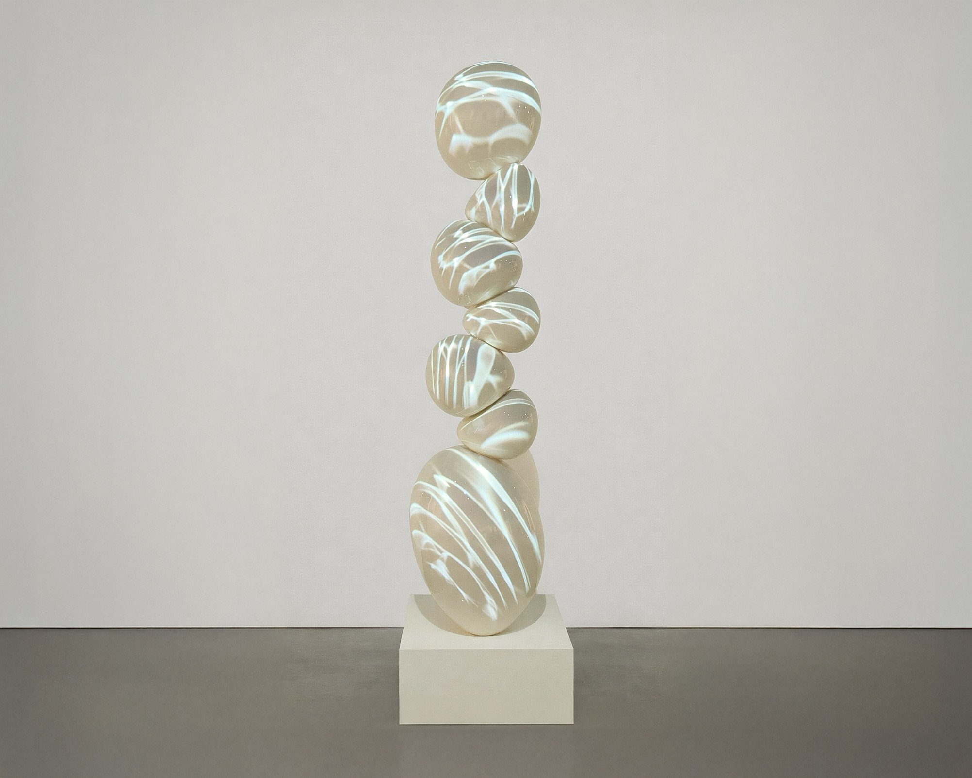 Elevated Continuum is a collaborative sculptural light work, complementing its stacked sculptural form through dynamic, unfolding sequences of water forms in a continuous cycle of transformation. Developed in collaboration with Amphora Projects and sculptors Brodin, the work explores the relationship between material and light, using water to transform each sphere into a living, continuous surface.